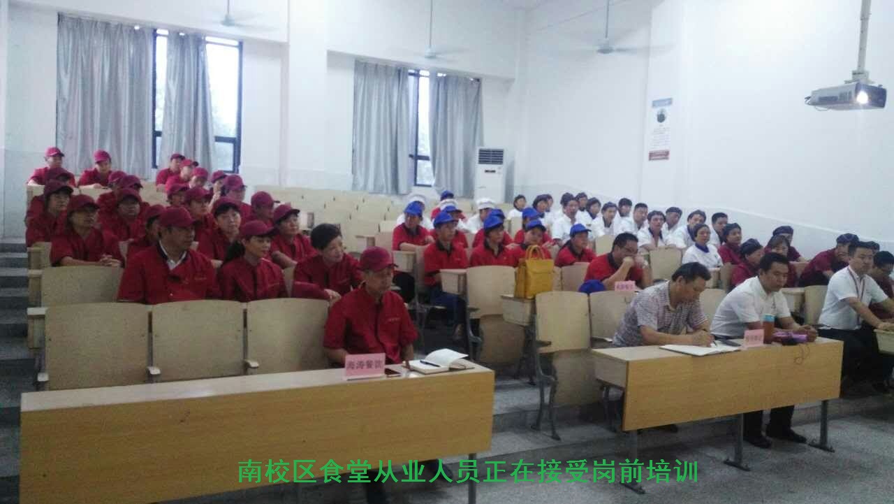 今年暑期,我校食堂重新招标,并全面进行改造、装修和餐饮文化布置。目前,南、北校区食堂的面貌焕然一新。开学在即,为全面提升食堂从业人员的服务水平,南北校区分别于2017年8月29日下午、9月1日上午,后勤管理处组织食堂从业人员进行岗前培训。
